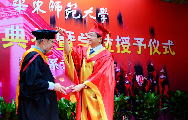 President of ECNU, Dr. Chen Qun, awards the honorary degree certificate to Prof. Haagerup