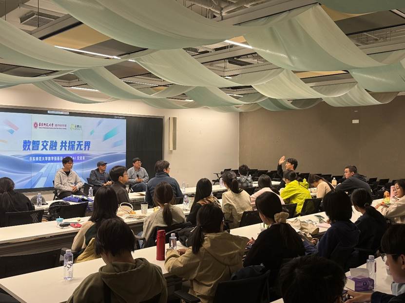 圆桌交流讨论环节,CTO张飞彪、算法总监邹国平、算法工程师陈佳雷分别结合个人成长经历,与同学们展开面对面交流。同学们围绕“数学专业进入AI领域的准备”“互联网企业招聘需求”“大学期间的学习重点”等话题踊跃提问,企业代表逐一作出耐心细致的回答。