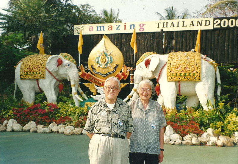 左图是与曹群怡和她的小女儿合影;右图是与夫人陈希仑摄于泰国