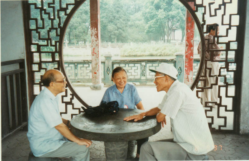 左图是2001年11月在无锡华东疗养院与前党委书记施平夫妇合影,右一是女儿陈一莹;右图是与曹锡华教授合影。