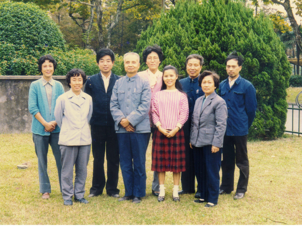 我在数学系工作,开始做本科的教务员,后来做研究生工作秘书,还被提为办公室副主任。我们有一个团结的、和谐的集体,留有一张照片(约摄于1986年,在数学馆前的草坪上)。