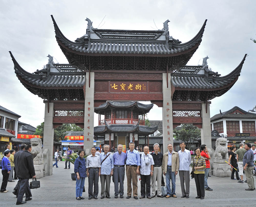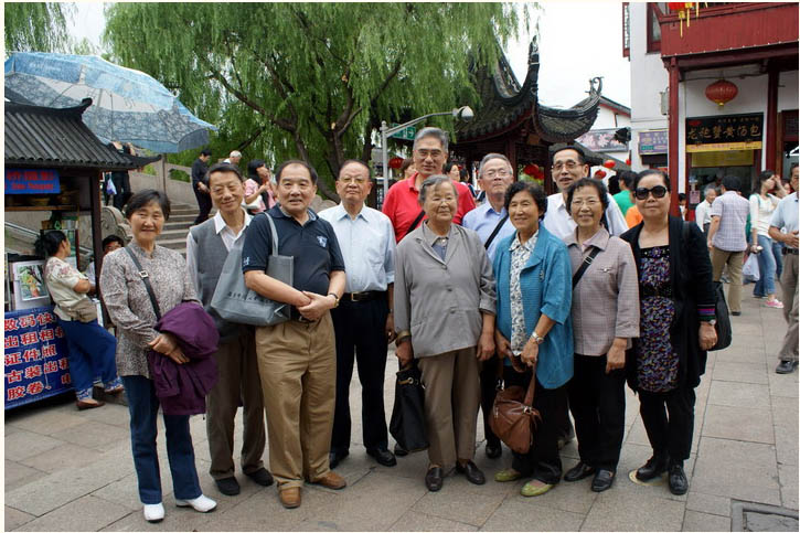5. 游览:选点七宝古镇和七宝老街。同学们想看看古镇的新貌,看看上海近郊的风光。大家抓住难得的游览机会三三二二的合影,定格在深情和美景之中, 留下了永久的欢笑和在一起时的愉悦。游览的一个半小时过得很快,大家意犹未尽,都期盼着下一次的欢聚和游览。