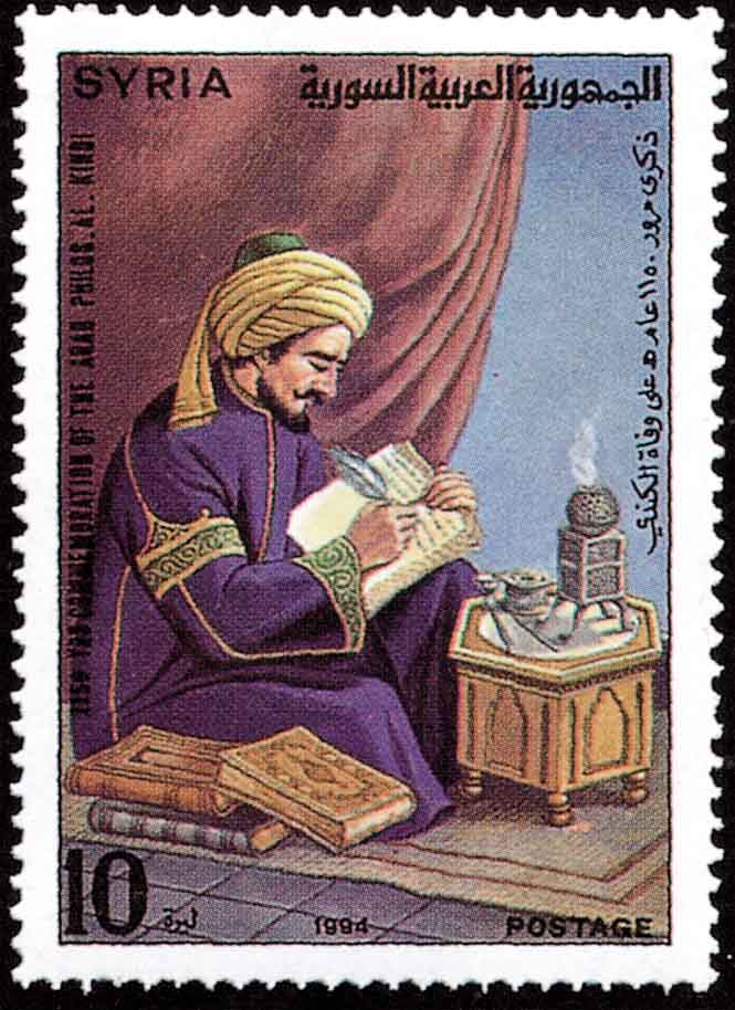 阿拉伯哲学家阿尔·金迪(al Kindi, 公元9世纪, 图4是叙利亚邮票)曾写过许多介绍欧几里德几何学和印度算术的书籍.