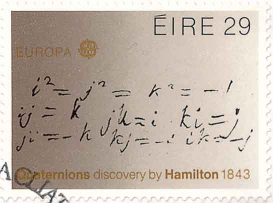 四元数是爱尔兰数学家哈密顿(William Rowan Hamilton, 1805-1865,图2)在1843年发现的数学概念。四元数是由实数加上三个元素ijk组成, 而且它们有如下的关系:
