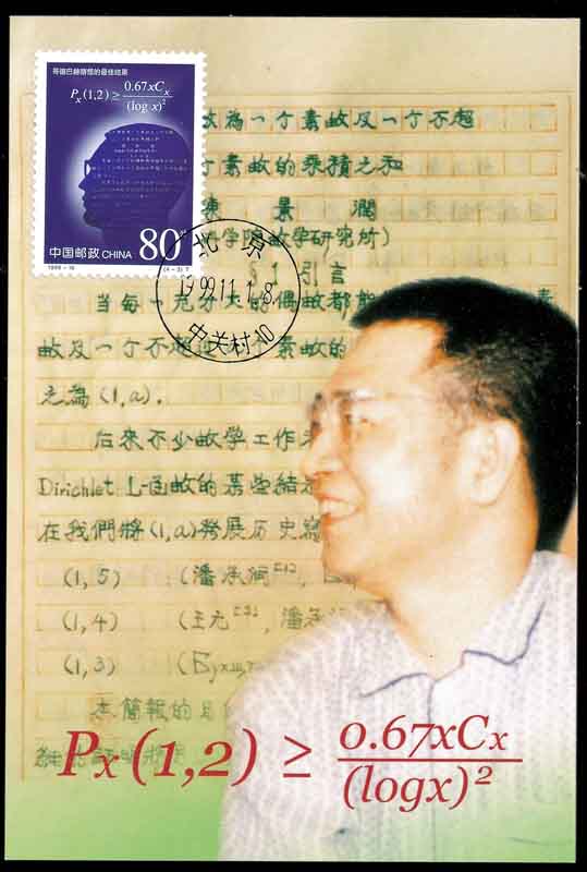 陈景润(1933-1996,图6)中国数学家,福建福州人。1953年厦门大学数学系毕业。1957年调入中科院数学所,在华罗庚教授指导下从事数论方面的研究。 1980年当选为中科院学部委员(现在的院士)。1966年发表《表达偶数为一个素数及一个不超过两个素数的乘积之和》(简称“1+2”), 成为哥德巴赫猜想研究上的里程碑。而他所发表的成果也被称之为陈氏定理。