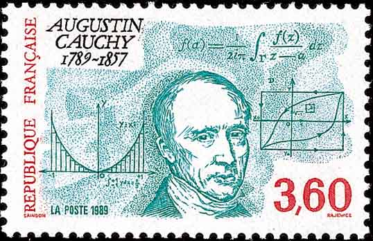 19世纪,法国的柯西(Cauchy,1789-1857,图3是1989年法国纪念柯西诞生200周年发行的邮票)相继开展对常微分方程解的存在性理论问题和与奇点问题相联系的解析理论研究。 随着法国的庞加莱(Jules Henri Poincaré,1854-1912,图4是1952年法国纪念庞加莱逝世40周年发行的邮票)和克莱因(Felix Klein,1849-1925)关于自守函数理论的研究使常微分方程解析理论的研究达到高峰。 同时庞加莱还开创了对常微分方程定性理论的研究。庞加莱关于在奇点附近积分曲线随时间变化的定性研究,为当今动力系统理论奠定了坚实的基础, 且在1892年以后被俄国的李雅普诺夫(Александр Михайлович Ляпунов,1857-1918,图5是1957年前苏联纪念李雅普诺夫诞生100周年发行的邮票)发展到一般高维情形而形成专门的“运动稳定性理论”分支。 李亚普诺夫的工作使微分方程的发展出现了一个全新的局面。1937年,俄国的庞特里亚金(Лев Семёнович Понтрягин,1908-1988)提出结构稳定性概念,要求系统在微小扰动下保持其稳定性不变。 此外,前苏联科学院院长克尔德什(Мстислав Всеволодович Келдыш,1911-1978,图6、7是1981年前苏联纪念克尔德什诞生70周年发行的邮品)对常微分方程边值问题的研究也多有贡献。
