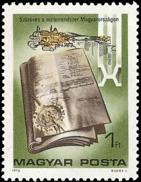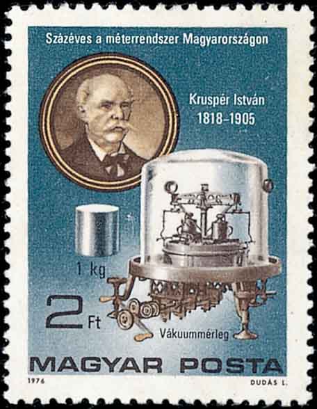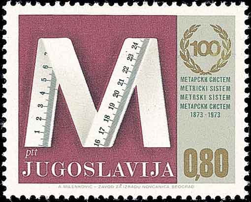 数字的最基本功能是计量。它是从清点某一事物的个数开始,然后发展为对这个事物轻重、大小等定量方面的描述。原先世界各地都有自己的度量标准,为了便于国际范围内的交流, 1875年17个国家的代表在巴黎召开会议制定国际通用的计量制度,通称公制。图1是韩国通过邮票来宣传与推行公制。公制的单位制度,又称米千克秒(mks)单位制,它们分别用来确定距离、质量和时间。
