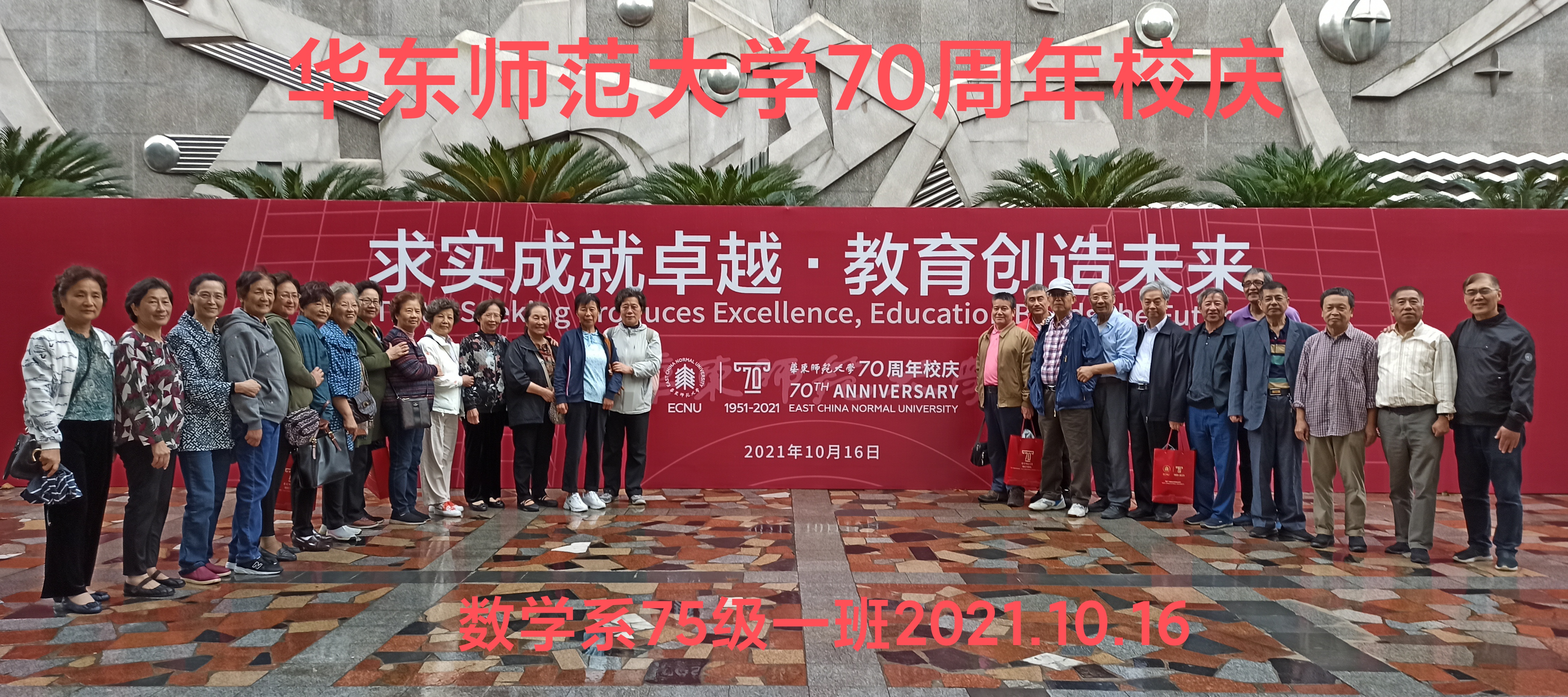2021年10月16日是月神直播 成立70周年纪念日,我们数学系75级1班的老学生们履行了繁杂的防疫检测手续,冒着大风大雨,相约在母校,共庆母校70华诞,祝愿母校早日实现世界一流大学之宏愿。