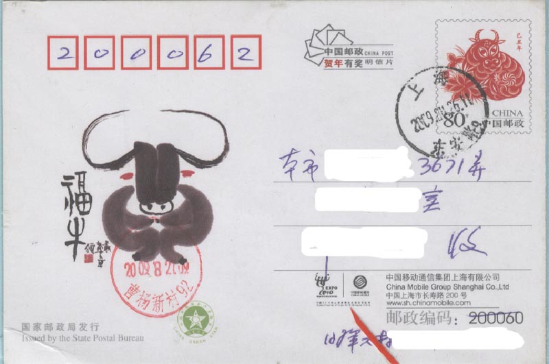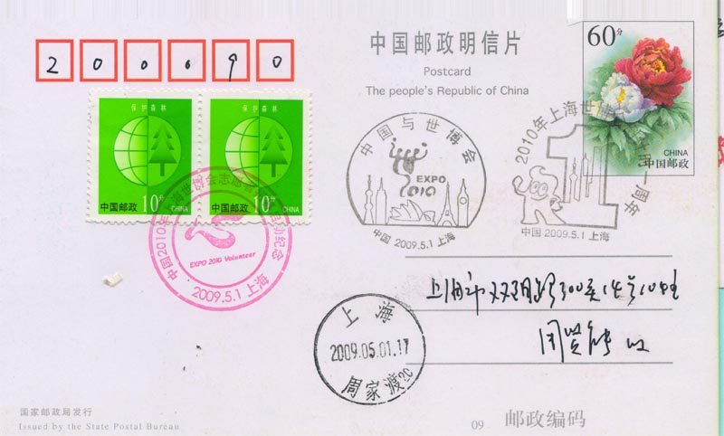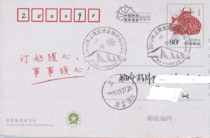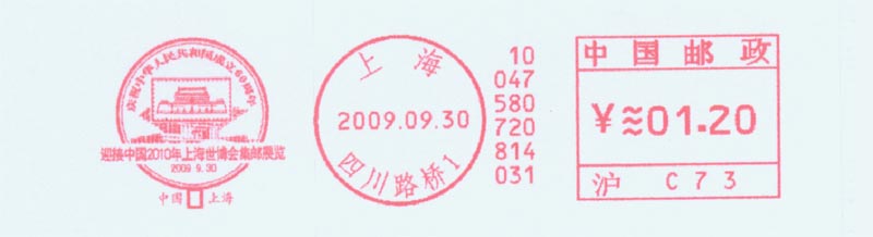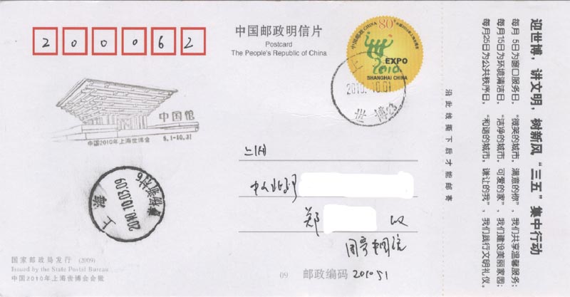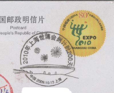 2009年10月13日是倒计时200天(图14),中外各场馆都在积极地建设中,各项准备工作都在有条不紊地进行着。在这之前,上海市总工会、 上海市文明办等10个单位主办,上海市邮政公司等承办的“庆祝中华人民共和国成立60周年暨迎接2010上海世博会集邮展览”于9月30日至10月9日成功举办(图15)。