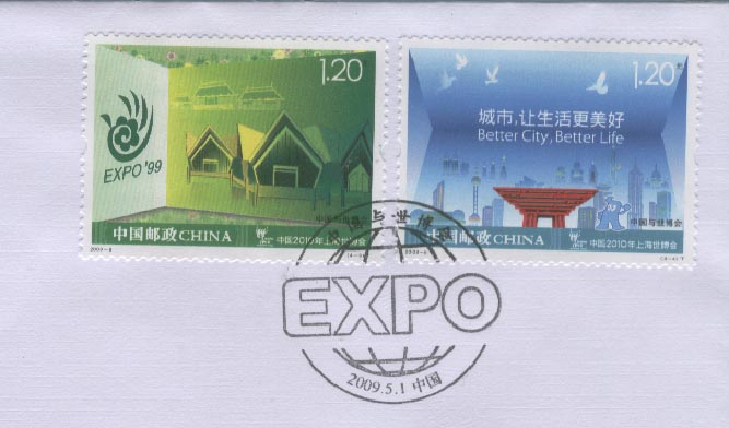 2009年5月1日是倒计时一周年(图11),国家邮政当局发行4枚一套《中国与世博会》邮票记叙中国参加各届世博会的历史(图12)。 竖立在北京天安门广场上海世博会倒计时牌开始启动。从今天起开始招募世博会志愿者(见图11),上海世博会志愿者的口号是:“世界在你眼前,我们在你身边”。