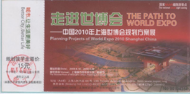 事实上,许多工作在这之前都已经完成。如:征集世博会合作伙伴,相继签约的有“中国电信”(图18)、“中国移动通信”(图19)等等。 还有为国内外世博会工作人员居住的世博村(图20),也早就如期建成使用。还有在上海市规划展示馆从2008年6月16日至2010年4月30日举办《走进世博会》展览会(图21), 向参观者介绍世博历史和上海世博会的规划。