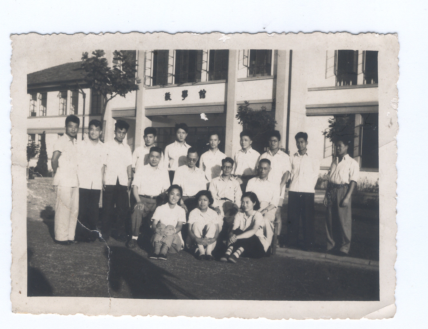 背景是1954年刚刚落成的数学馆。 建造的标准很高。承重采用高规格钢筋,使得教室里能够安装宽大的铁窗,光线充足,适合教学之用。其设计至今不觉过时。