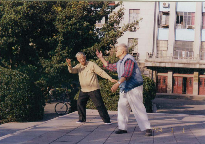 照片 1:1994年曹先生和我清晨在校园里打太极拳