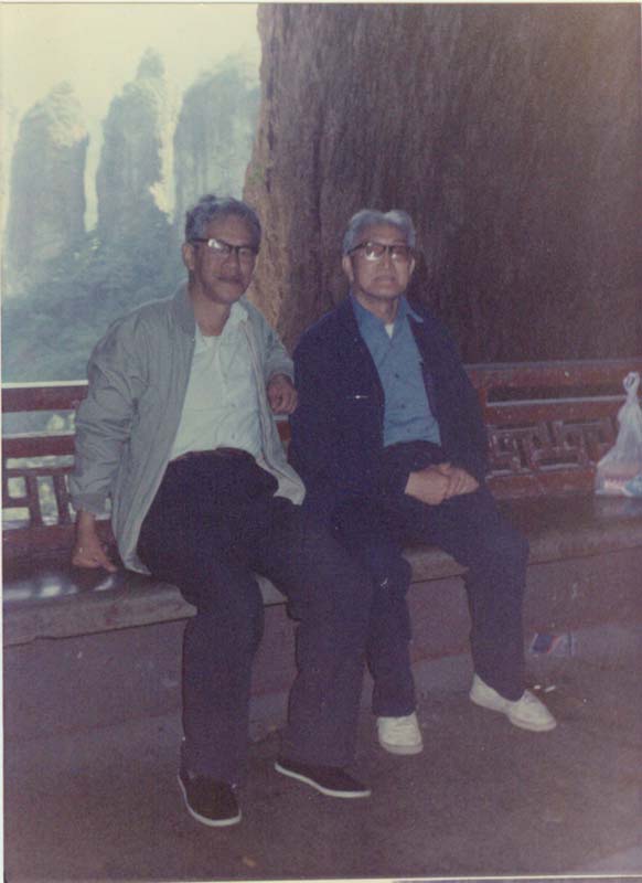曹先生为人随和,兴趣广泛,课余愿意和年轻的教师们在一起参加各项活动,打乒乓,打篮球,排球,游泳以及旅游等等。1958年搞体育大跃进, 他和我们一起参加篮球比赛,一起参加劳卫制体育测试,他听说我1万米还没有测试过,一天他来找我说,他1万米也没有测试过, 并相约我晚上教学工作结束后一起到共青操场跑1万米。这个事情40年后的1998年,他还对我说:你还记得吗?当年我们晚上一起跑1万米。 曹先生很注意身体锻炼,即使生病以后,只要有可能他总会在早晚到校园里打太极拳或者散步(照片1)。 1989年曹先生应邀参加在浙江温州举行的华东地区运筹学学术会议,曹先生和与会的数学系校友们聚会合影(照片2), 后来在温州工作的数学系校友也赶来相聚并合影(照片3)。会后曹先生和我还应交通大学校友胡毓达的邀请去雁荡山旅游(照片4)。