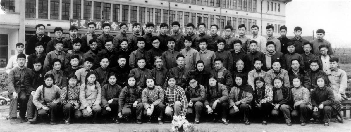 照片中教师在第一排,左起第5位依次是郑英元、林锉云、鲍修德。学生中后来在数学系工作的有:61届陈坤荣(2排左2)、俞华英(3排左6)、冯准(3排左7),62届陈志杰(2排左15), 64届王吉庆(1排左1)、计惠康(2排左3)、刘昌堃(2排左9)