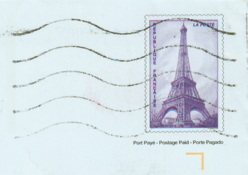 图21(右):以后用于其他邮品的埃菲尔铁塔(法国邮资已付信封,2000年实寄)