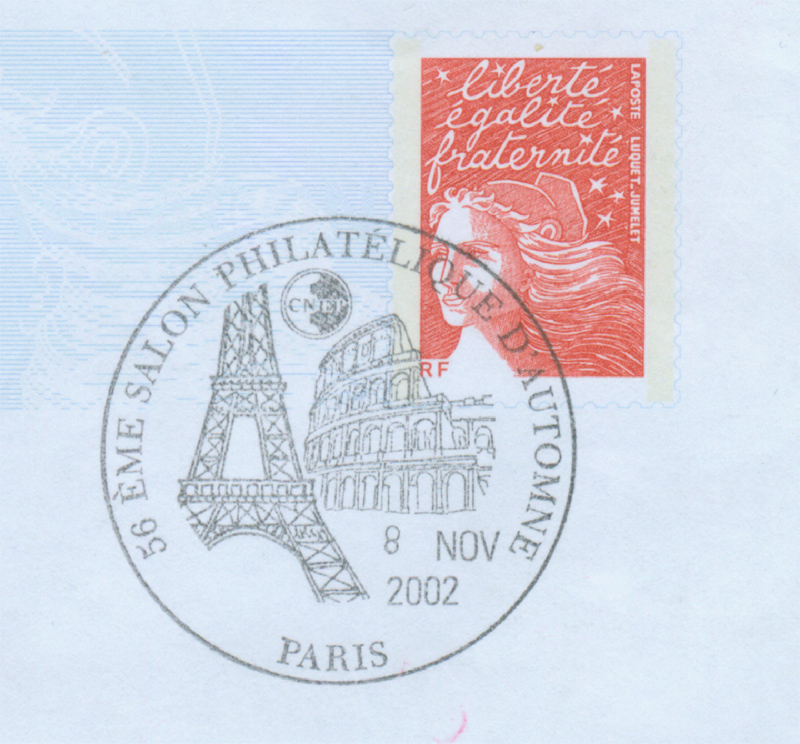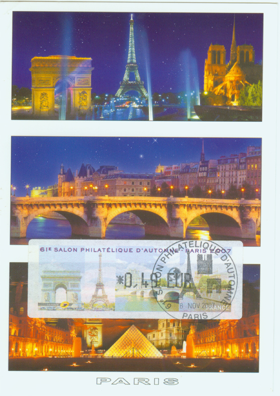 图24(左):法国2002年秋季邮展(法国纪念戳,2002)    图25(右):法国2007年秋季邮展(法国电子纪念邮票的极限片,2007)