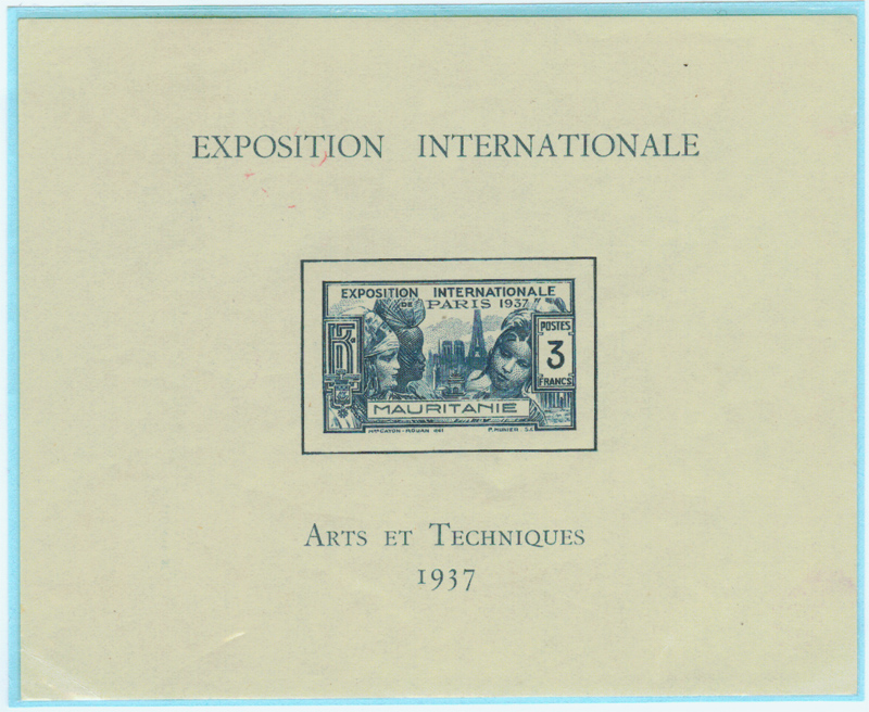 图2:1937年巴黎艺术与技术世界博览会纪念邮票(毛里塔尼亚小型张,1937)