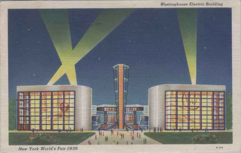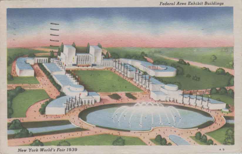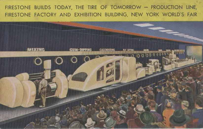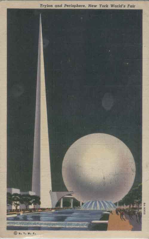 8.  1939-1940年美国分别在纽约和旧金山举办世博会。 1939-1940年纽约世博会是为纪念华盛顿于1789年当选美国第一任总统150周年。这次世博会主题是:建设明天的世界。可惜“明天”就此画上句号,不久, 第二次世界大战爆发,成为人类的噩梦。本届世博会标志性的建筑是一个球体建筑物(称为佩里球)和一个圆锥体建筑物(称为特赖龙)。图27是在本届世博会纪念邮票、 纪念邮戳和纪念明信片,这里都出现世博会标志性建筑的身影。图28是当时世博会的两个场馆,图29是当时世博会的两个企业馆。图30是当时展出一条生产流水线, 它引起参观者的极大兴趣。